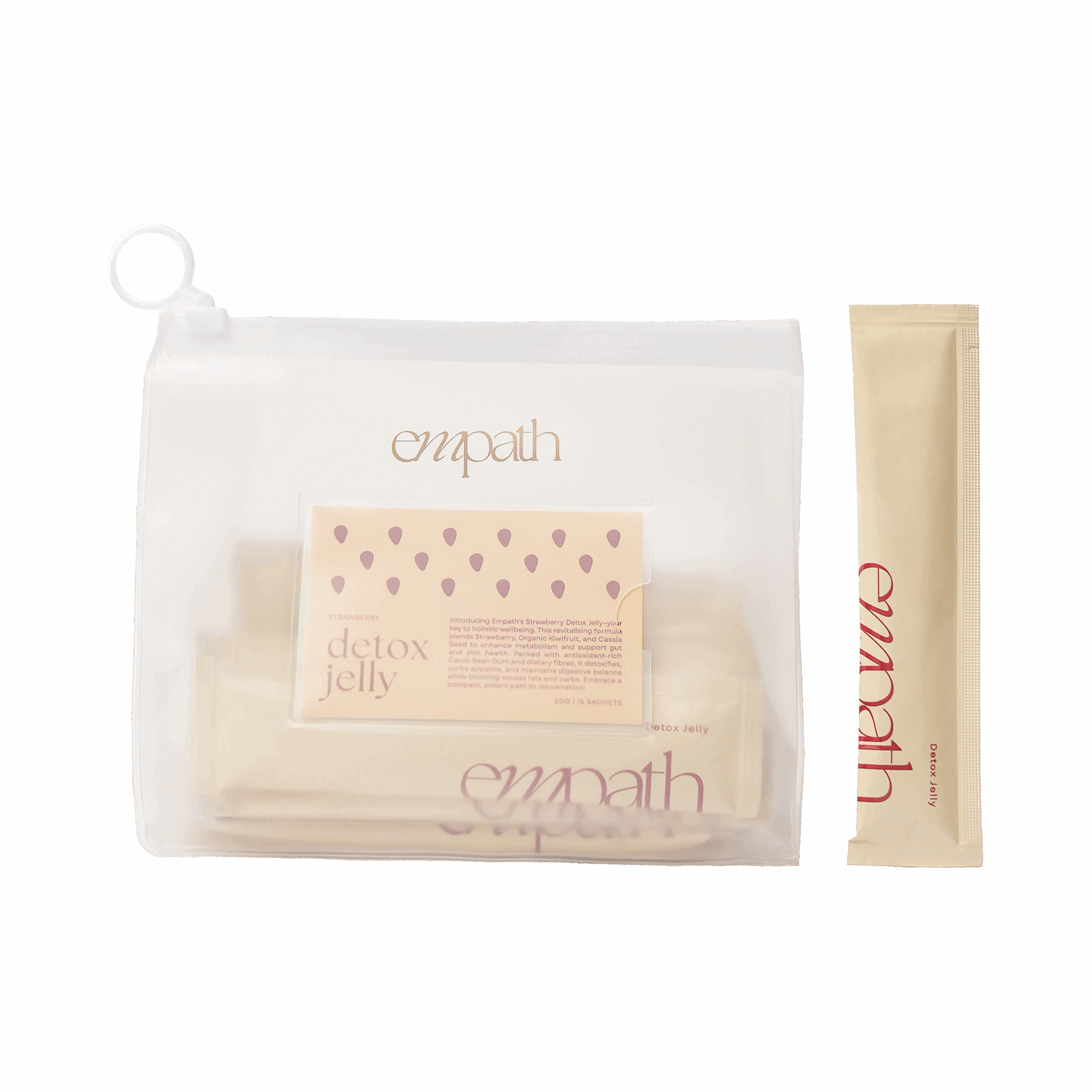Introducing Empath’s Detox Jelly—your compact companion for holistic well-being and vitality. This revolutionary blend combines the rejuvenating essences of Organic Kiwifruit, Cassia Seed, and Red Grape, offering a powerful detoxifying experience that enhances metabolism and nurtures gut and skin health. Infused with antioxidant-rich Carob Bean Gum and dietary fibers, it fights toxins, reduces hunger, and maintains optimal digestive balance, all while blocking excessive fats and carbs with Cassia and Agar. Discover rejuvenation with this compact and potent detoxifying wonder!